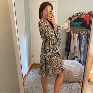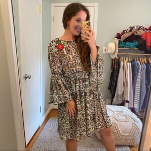 Simply stunning bohemian fit and flare long sleeve mini dress from Anthropologie super popular boho brand Bhanuni by Jyoti with floral embroidery detail