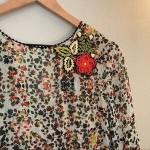 Bhanuni by Jyoti Anthropologie Semi Sheer Floral Embroidered Boho Mini Dress 2/S