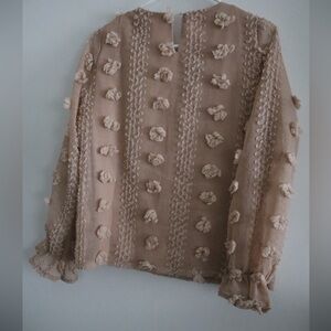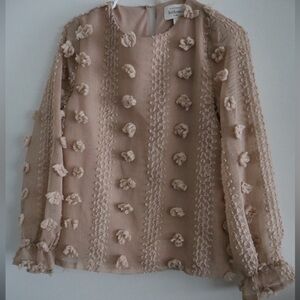 Turn heads in this romantic textured blouse by Böhme, featuring delicate raised pom pom details and sheer long sleeves. The blush-nude hue pairs perfectly with jeans or tailored trousers for a chic and feminine look.