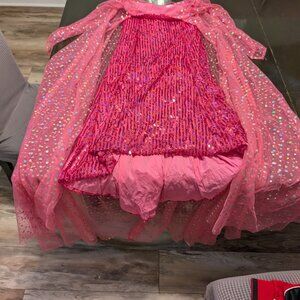 Bi Bi Beiniu Hot Pink Sequin Cape Dress Costume Size 150 (Youth 10/12) Sparkly!