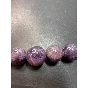 Bi color deep purple amethyst beads in graduated sizes . 20 inch length. 891.0 total ctw. This variety of amethyst is referred to by multiple nicknames but not exclusive to chevron amethyst, dream amethyst, and bi color amethyst. Magnetic clasp is played with rhodium over sterling silver. 925 Djoy