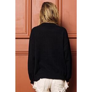 Get ready to sparkle this holiday season with this BiBi black Christmas sweate featuring "merry & Bright with colorful tinsel lettering! Perfect for adding a touch of festive fun to any outfit.
