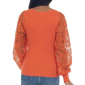 BiBi ribbed orange long sleeve shirt, lace sleeves. Size XL.