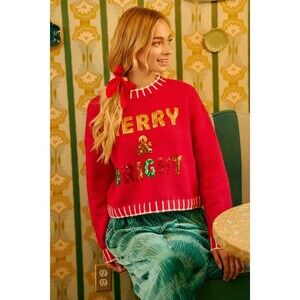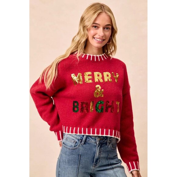 BiBi Christmas Theme Sequin Lattering Sweater NWT