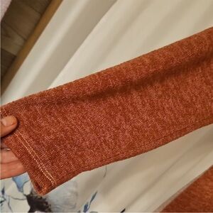 Bibi cozy knit colorblock top in fall hues. Perfect for casual wear. Sweater material, but lightweight. No size tag, but fits like a large.