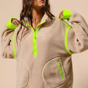 BiBi Contrast Edge Half Zip Up Sherpa Jacket