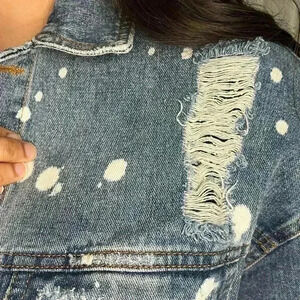 Size small but runs big! Distressed, and very comfy. Worn a few times.