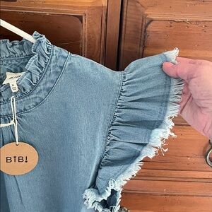 BiBi Light Blue Ruffle Sleeve Blouse NWT