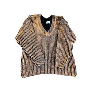 BiBi Metallic Bronze Ribbed Sweater | Shimmer Knit V-Neck Pullover | Cozy...