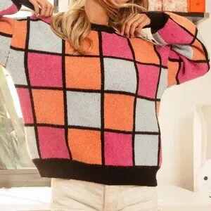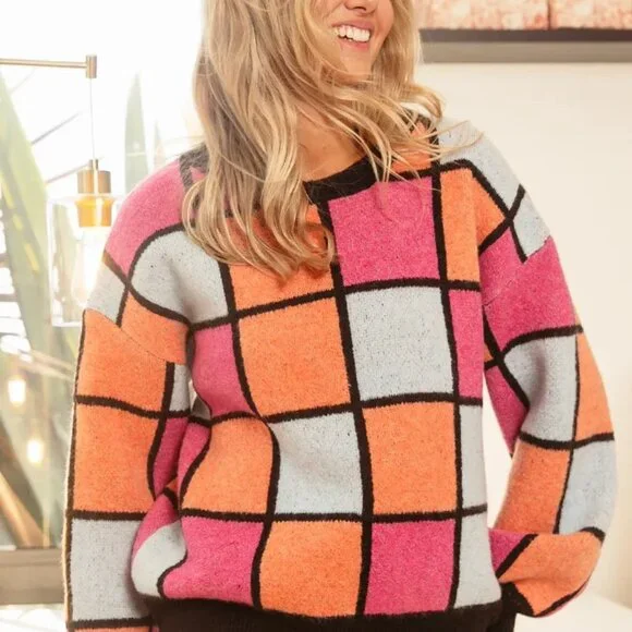 *The Multi Color Checker Pattern Sweater is a fun and eye-catching addition to your knitwear collection. Featuring a checker pattern in multiple colors, this sweater offers a vibrant and playful look. The design is stylish yet versatile, making it easy to pair with different bottoms for various occasions. Crafted from cozy and warm material, this sweater is perfect for staying stylish and comfortable in cooler weather. Make a bold statement with this unique and trendy checker pattern sweater.