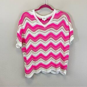 BiBi Pink Pointelle Slouchy Beachy Short Sleeve Knit Top Size Small
