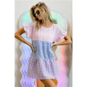 *The Plaid Color Block Tiered Top is a chic and playful addition to your wardrobe. With its combination of plaid and color block patterns, this top offers a unique and eye-catching style. The tiered design adds dimension and movement to the piece, creating a subtle and flattering silhouette. Perfect for adding a touch of fun to your outfit, this top can be dressed up with trousers or dressed down with jeans. The contrasting colors and patterns make it a versatile option for various occasions. Elevate your look with the trendy and fashionable Plaid Color Block Tiered Top for a stylish and modern ensemble.