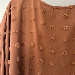 Price is negotiableđź–¤ Chic rust blouse with textured design. Flowy sleeves and relaxed fit. Ideal for versatile styling.