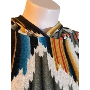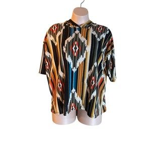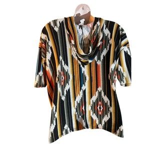 BiBi Short Sleeve Lightweight side slits Hooded Top Aztec Print Womens Large