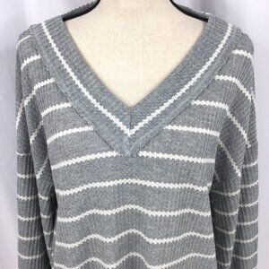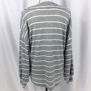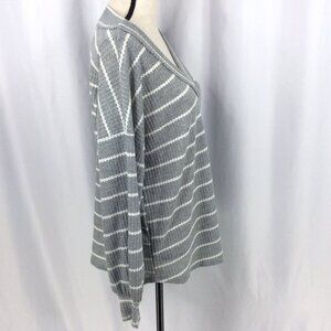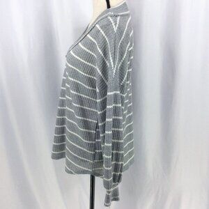 BiBi Thermal Waffle Knit Top Womens Size Medium Gray White Striped V-Neck