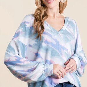 BiBi Tie Dye French Terry Top with Balloon Sleeves