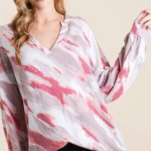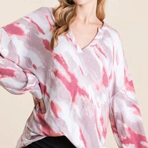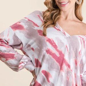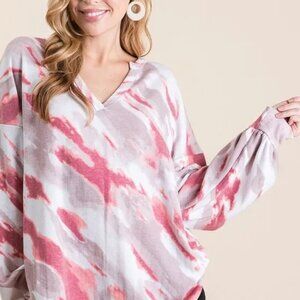 BiBi Tie Dye French Terry Top with Balloon Sleeves