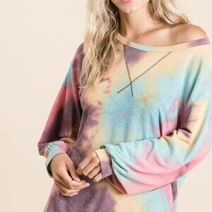 *Embrace the trend with our tie-dye print French terry sweatshirt. This sweatshirt features a vibrant and stylish tie-dye print that adds a pop of color to your wardrobe. Made from cozy French terry fabric, it offers both comfort and style for all-day wear. The unique print creates a fun and playful look, perfect for casual outings or lounging at home. Elevate your outfit with this on-trend sweatshirt that combines fashion and comfort effortlessly. Add a touch of personality to your closet with our tie-dye print French terry sweatshirt.