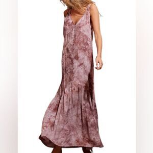 BiBi Tie-Dye Sleeveless Pink Tie Dye Button Detail V-Neck Casual Beach Dress sz