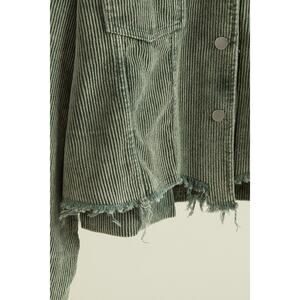 BiBi Vintage Washed Distressed Front Hem Relaxed Fit Corduroy Jacket | Charcoal