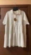 Chic BiBi top with black stripes on white. Features tiered layers and short sleeves.