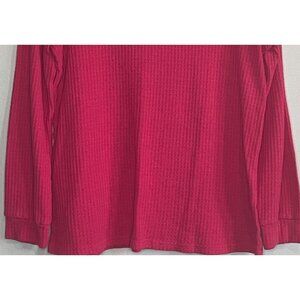BiBi Womens Hot Pink Long Sleeve Waffle Knit Top V-Neck Small Made in USA