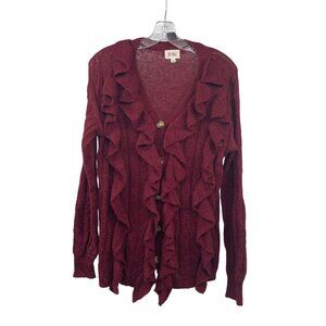 BiBi Women's Ruffle Button Up Cardigan Long Sleeve Maroon Large Lightweight