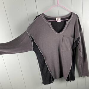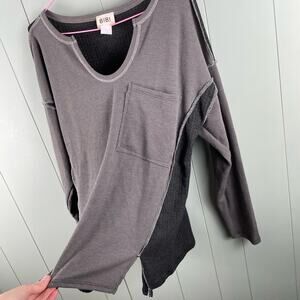 BiBi mixed v-neck pocket thermal tee