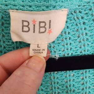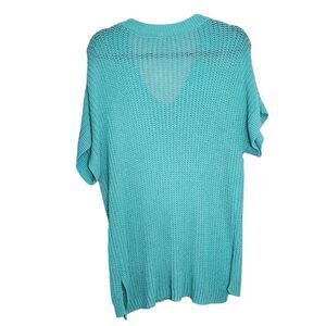 BiBi blue loose knit short sleeve oversized top excellent condition 29" pit-pit 30" long