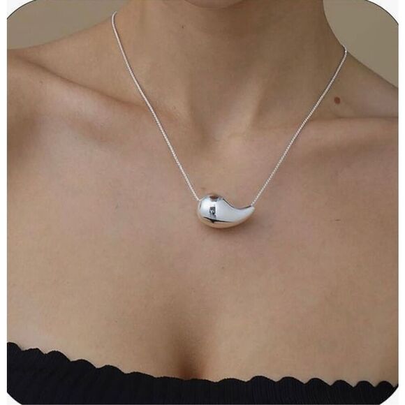 Bi&Yamigeo Teardrop Necklace Silver Box chain length is 23” NEW Gold Layered Gif