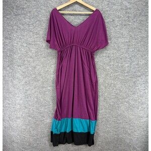 Biaggi Dress Women L Large Purple Striped Sheath Midi V-Neck Short Sleeve Rayon