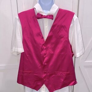 Biagio Collection Pink Vest Bow Tie And Handkerchief 100% Silk Size Medium