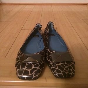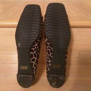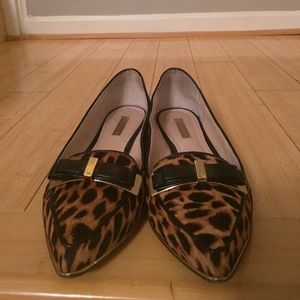*Reposhed* Leopard leather flats, Burnished silver metallic feature on the toe. Worn once by original seller. I tried them on and they didn't fit. They are a long 9.5.