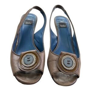 Biala Made in Italy Women’s 6.5 Leather Peep Toe Slingback Sandal Heels Brown