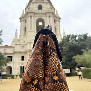 Bianca Brown Embossed Snake Top Handle Bag