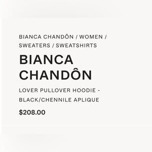 Bianca Chandon Lover Logo Hoodie in black and white. Unisex Large