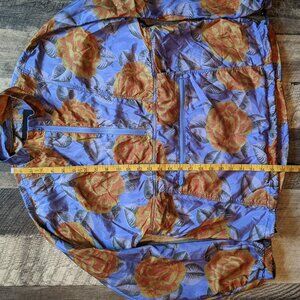 Bianca Chandon Silk Anorak Blue Floral Orange Roses Medium