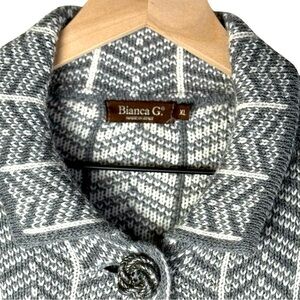 Bianca G. Knit Cape Jacket Gray White Herringbone Wool W Size XL Made in Italy