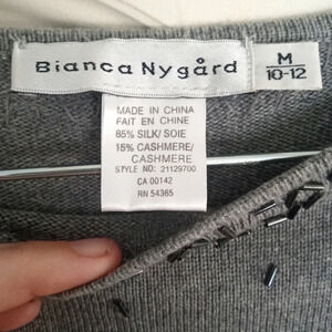 Bianca Nygard Women's Gray Silk Cashmere Blend Beaded Sweater Size Medium 10/12