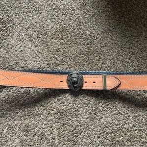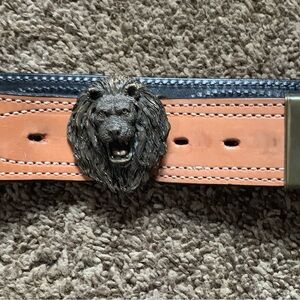 Bianchi B10 Reversible Sport Stitched Belt with 1980 Indiana Metal Craft Lion Buckle – Waist Size 44 – Good Condition