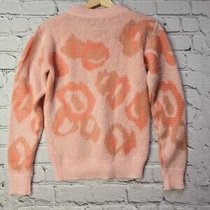 Bianco Blu Italy Mohair Blend Pink Coral Crew Neck Fuzzy Sweater Size Small