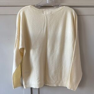 Soft knit sweater in a pale yellow hue with a relaxed, modern silhouette.
