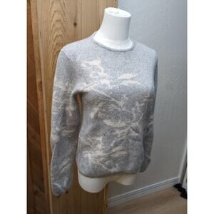 Bianco & Blu Sweater Womens SMALL S Gray Floral Merino Wool Cashmere Blend Italy