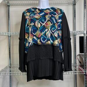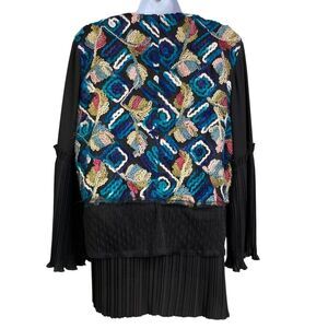 Bianco & Nero Womens Multicolor Embroidered Leaf Pleated Hem Blouse Size 46