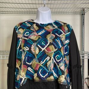 Bianco & Nero Womens Multicolor Embroidered Leaves Top Size 46/XL Artisanal Boho