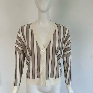 BiancoNero Women's Long Sleeve Button Up Stripped Viscose Blend Cardigan Sz M