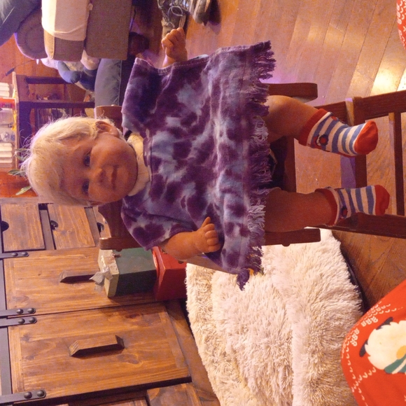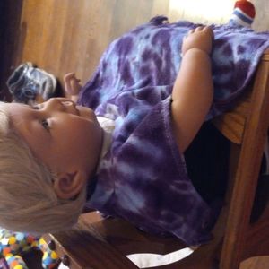 handcrafted bib. one size it's 6mths to 2 years. Terry pull over head. great for feeding and crafts when older. dyed by seller. color set. shades of purple and pale blue