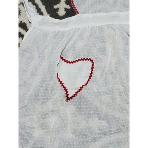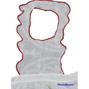 Bib Apron White Dotted Swiss Cotton Fabric Heart Pockets Red Ric Rac Vtg