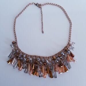 Bib Necklace 3 Rows of Gold Amber Clear Charms 16"