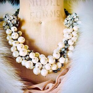 Gorgeous faux pearl mixed media layered rhinestone statement necklace any occasion, wedding, formal or prom. PUT FEAR IN HEARTS AND KNOCK EM’ DEAD! Collar or bib length. 26” overall.